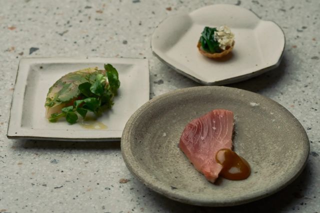 TSUKIHIは、SIX THREE ESTATE WINERY併設のレストランです。 越前の海と山の恵みを活かし、独自の調理法で地域の歴史と文化を感じる料理を提供。 自社醸造ワインとのペアリングで唯一無二のガストロノミーを楽しめます。