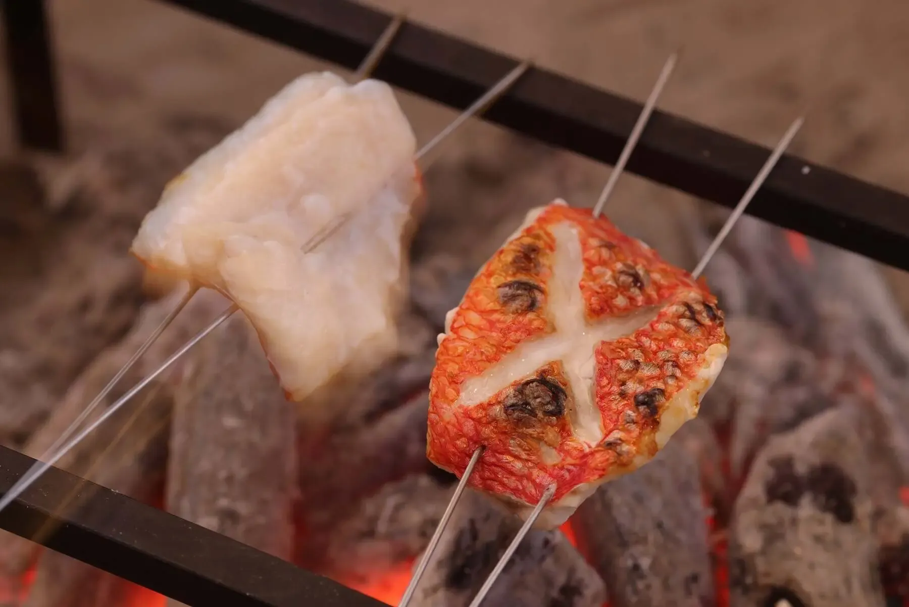 「徒然」では、東京のど真ん中で、炉を囲みながら旬の食材をじっくりと調理する贅沢な体験が楽しめます。専属のシェフとソムリエが、せいろ蒸し、串焼き、灰焼き、塊焼き、鍋、釜めしなど、その日の美味しい素材を火でじりじりと仕上げます。ゆっくりと、じわりと旨みが引き出されるその過程を楽しみながら、酒と肴を味わい、時を忘れるひとときを過ごせます。落ち着いた空間で、特別な日や大切な人と、ゆったりとした時間を堪能してください。