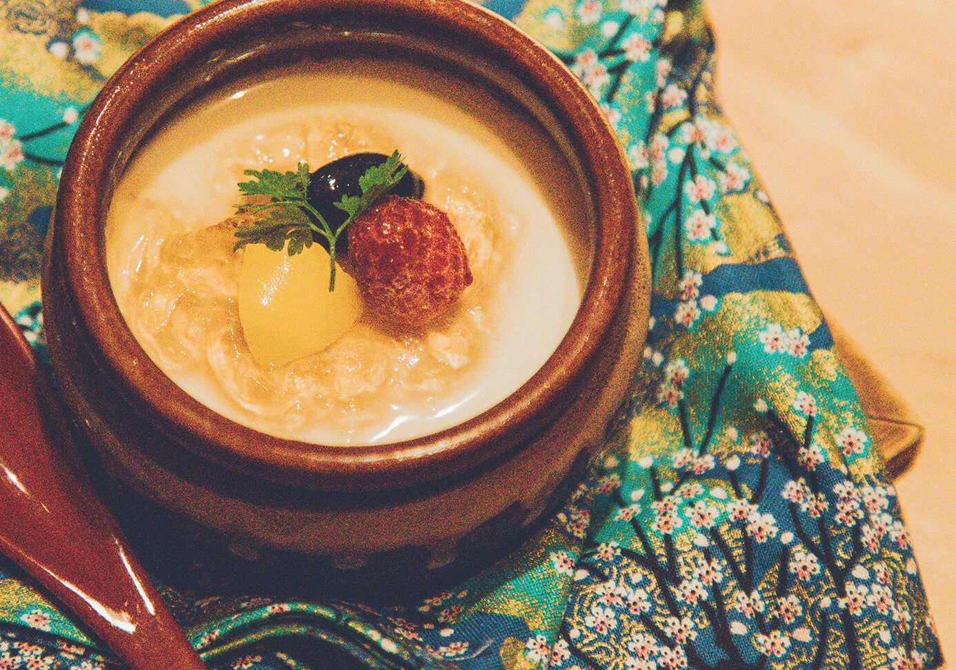 北新地の眩い光に背を向けて、今夜は、そっと西へ。裏新地に灯る、明かりをめざして。燈火は、花のように燃える燈籠の火。ちいさくても美しく、ながく心にのこる輝きで、夜を彩ります。古民家を思わせる仄暗い店内は、迷路のように入り組んで、時間や方角の感覚が心地よく曖昧になる頃、あなたのためにリザーブされた特別な個室へと辿り着きます。