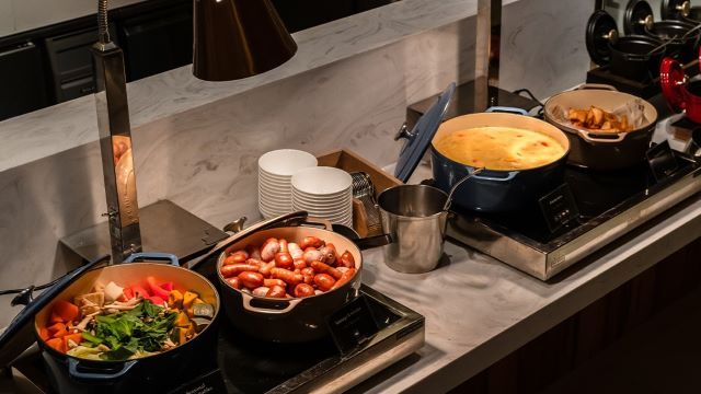 浅草のホテル内にあるレストランです。朝食時は、メイン料理を自由に選択可能です。サイドメニューは数々のメニューの中から、好きなものを自分で取るブッフェスタイルとなっています。バンズにこだわった名物の浅草バーガープレートは、ぜひとも味わっておきたい絶品メニュー!玉子料理、浅草ベーコン、フレンチトーストなどは、シェフが目の前で焼き上げます。ライブ感も楽しみながら、朝から美味しい食事をご堪能ください。
