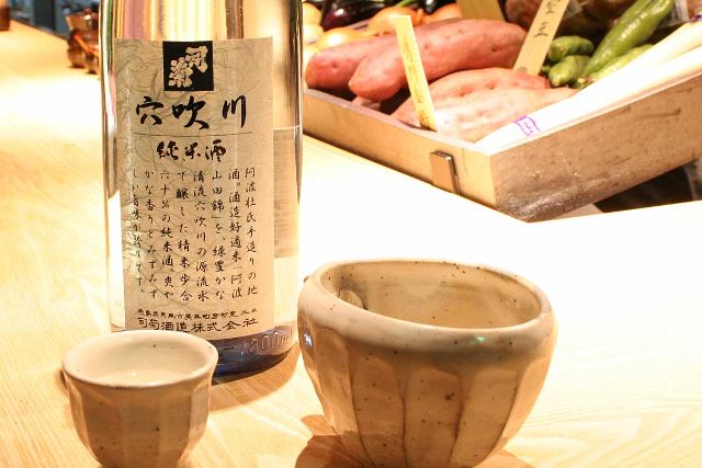 落ち着いた雰囲気の中で堪能する地酒と料理の店。カウンターとボックスシートがございます。いずれも木のテーブルを使用した、温かみのある空間です。「串」「炉端」「鮮魚」「鍋」「地酒」の融合をコンセプトに、新しいカジュアル和食をご提供しております。阿波尾鶏の炭火焼鳥やその日に市場に挙がった地魚など、旬の食材をふんだんに使用したメニューもございます。お酒は全国から取り寄せた日本酒や、徳島の地酒など、幅広くご用意しております。