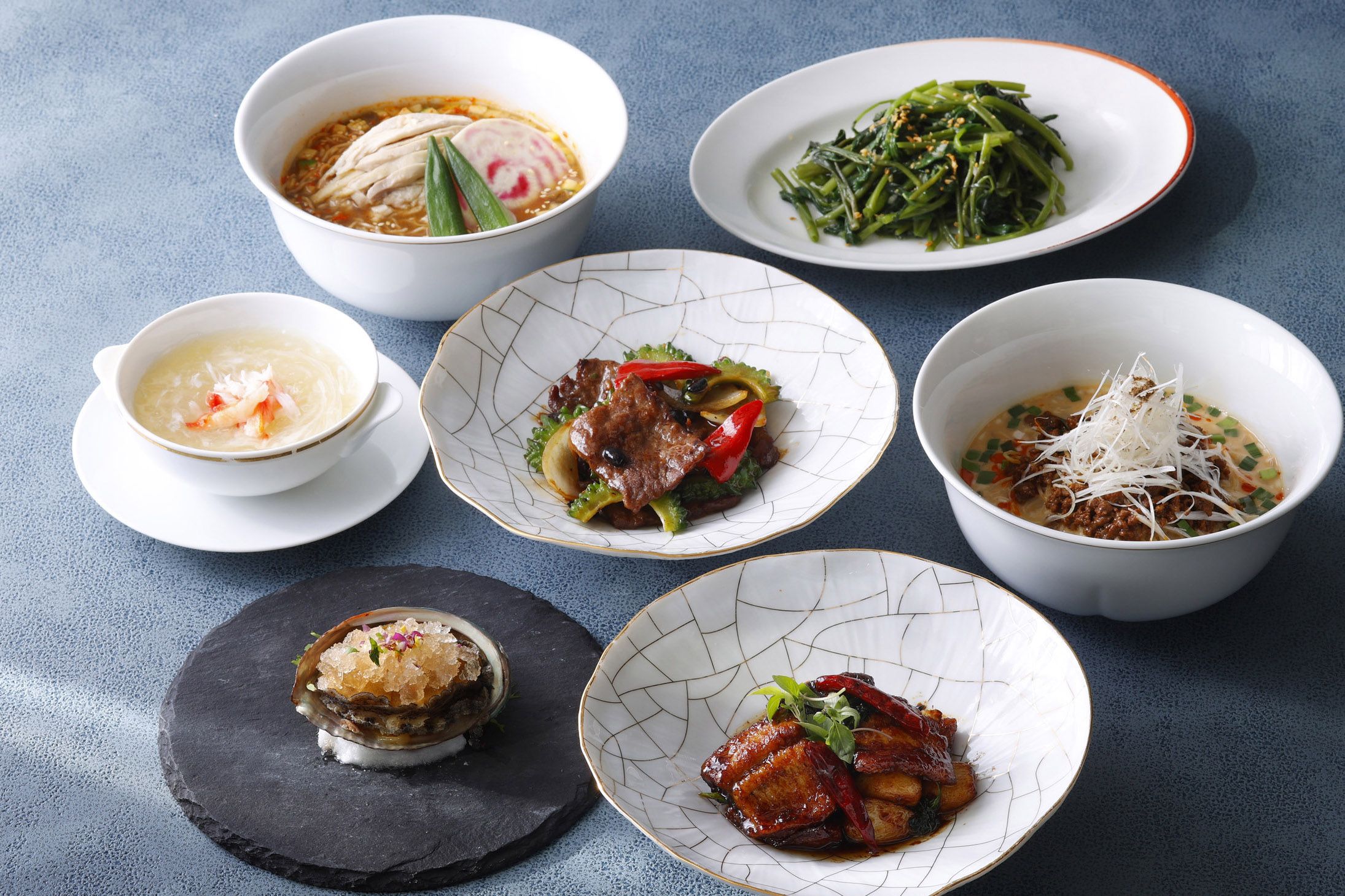 個性的なデザインの門をくぐり店内に一歩足を踏み入れると、天井に圧倒的な存在感の龍のモチーフが広がります。そんな非日常の雰囲気の中で楽しめるのは、絶品中華料理の数々です。専門の点心師が手作りする本格的な点心から目の前で仕上げるライブ感が魅力の北京ダックまで、あらゆるお客様のニーズにお応えします。美味しい中華料理とともに非日常の特別な時間を当店でお過ごしください。