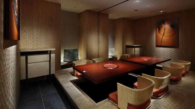 インテリアデザイナー橋本夕紀夫氏と株式会社織絵プロデュースによって手掛けられたシックで上質な空間。ここでは目利きが厳選したこだわりの料理が味わえます。焼き肉はもちろん前菜、麺類、そしてデザートに至るまで。男性だけでなく若い女性にも楽しんで頂けます。特にヒレ肉をレアよりも肉の中心温度が低いベリーレアで提供するトラジのヒレ焼きは絶品です。自信なくしては出せないこだわりの品々でお迎え致します。