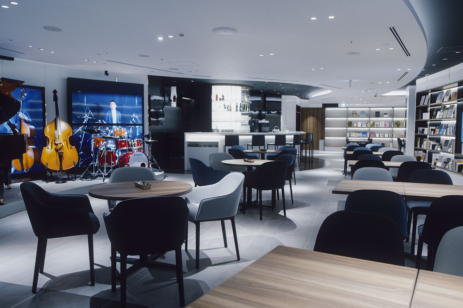 「NOTES BY YAMAHA 2F Café Lounge」は、銀座の目抜き通り沿いにある、モノトーンでシックな雰囲気のカフェラウンジです。多くの蔵書がある併設のライブラリーから気になる本を選んで読んだり、バーチャルライブシステムで音楽演奏を聴いたりしながら、日本の音楽シーンを牽引するヤマハが提供する音楽の世界の魅力を感じながら過ごせます。音楽をモチーフにした個性あふれるモクテルなど、こだわりのドリンクを片手に思う存分音楽に浸ってお過ごしいただけます。