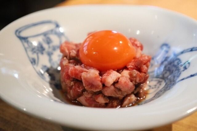 ホルモンの刺身やユッケ、肉寿司、旬の野菜を使った一品料理などが楽しめます。焼肉はお好みの部位を一枚からさばいてご用意するのが吉岡太一の楽しみ方。