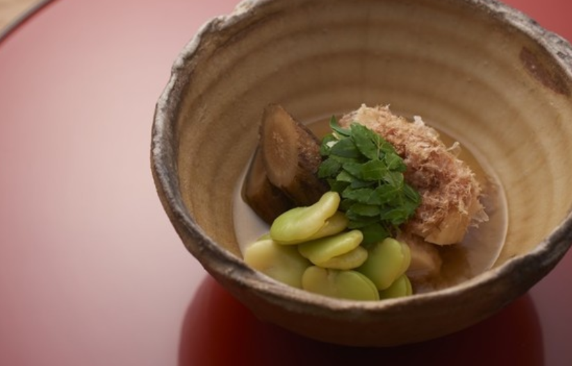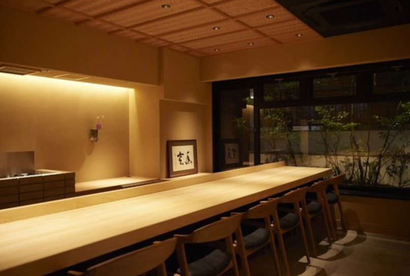 名店にて長年修業を重ねた亭主が腕を振るう『幽玄』。風情を感じさせる落ち着いた店内には、ヒノキの大きなカウンターが広がり、亭主の巧みな技を間近で眺めることがでます。旬の素材を活かした懐石料理は、先附、煮物椀、八寸、焼物と、四季の移り変わりを感じる逸品ばかり。お料理の余韻に浸りつつ、食後にはお抹茶をお楽しみください。お料理、器、空間、そのすべてを五感で感じながら、優美な懐石料理をご堪能いただけます。