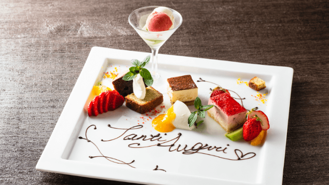・Assortment of 3 kinds of seasonal appetizers ・Seasonal appetizers ・Special seasonal pasta ・Fish dishes ・Meat dishes ・“2 kinds of seasonal special desserts” from our sister restaurant Amalfi Dolce ・2 kinds of bread ・Coffee or tea