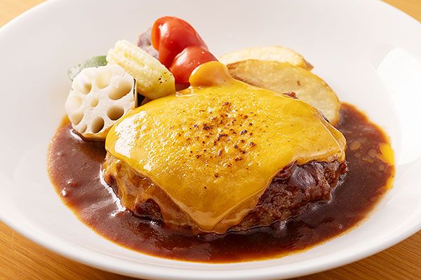 【7種のメインディッシュ】ピッツァ 烏賊と小松菜のマリナーラ、パスタ ミートソースのリガトーニ、ホテル特製ハンバーグステーキ、ガレット 卵とベーコン、国産牛のカレーライス、チキンフリカッセ バターライス添え、牛ロースステーキ シャリアピンソース(+¥1500)