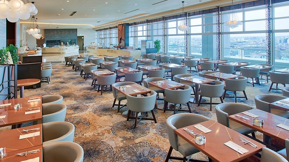 明るく開けた店内から見えるのは、美しい名古屋の街並み。昼間には光がたっぷりと注ぎ込み、夜には色とりどりにきらめく夜景を楽しむことができます。スタイリッシュでカジュアルな店内は、リラックスできる空間です。パーゴラでは、朝・昼・夜とクオリティの高いホテルブッフェを楽しむことができます。シェフが目の前で仕上げる、パフォーマンスキッチンも魅力です。味だけでなく、目からも食事を楽しめます。