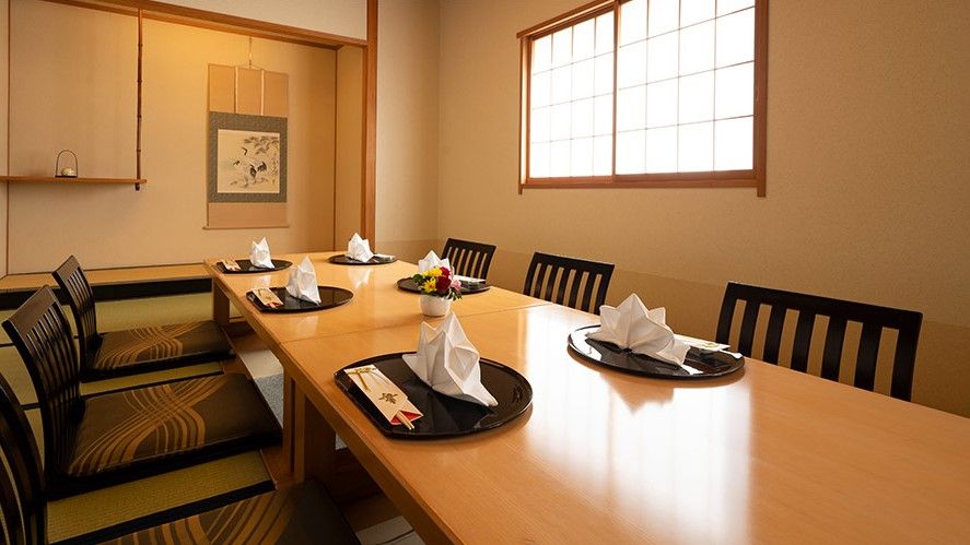 お届けしたいのは、ゆったり落ち着ける和の空間。大切な方と喜びを分かち合いたい特別な日、ご接待やご会食にも対応できる和食レストランです。新鮮な地元の味を堪能できる季節メニューを取り揃えています。選び抜いた野菜と魚介を使って丁寧に作り上げました。掘りごたつでゆっくりくつろげるお部屋もご用意しております。和テイストの雰囲気ただよう和やかな空間で、特別な時間をお過ごしください。