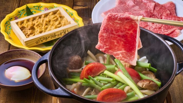 Our facility uses only the highest grade Awaji beef, which is certified by only about 150 head of Awaji beef per year after clearing various standards. Menu: Smoked Sakuramasu Monaka Awaji caught seafood "Hiruami" Naruto wakame carpaccio Steamed conger eel and mashed potato cartafa with truffle flavor Free-range chicken eggs and foie gras flan Awaji beef Sankai tomato sukiyaki Ayuhara rice (white rice and brown rice) from Awaji Island / miso soup / pickles Fruit plate with message