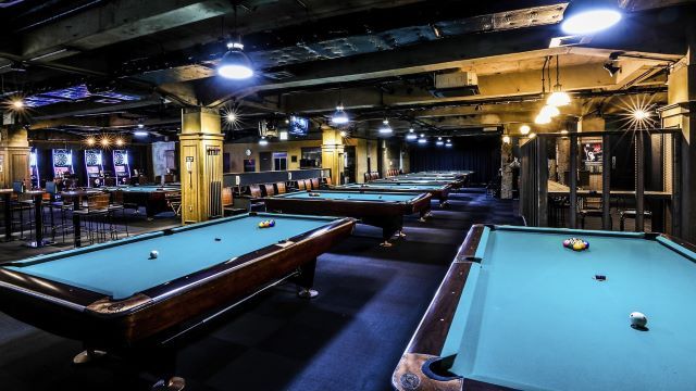 落ち着いた大人の雰囲気が漂う昔ながらのアメリカンBarスタイル。広々とした店内には、ビリヤードが11台とダーツが18台、卓球台を2つ完備しており、リッチな気分でインドアスポーツをお楽しみいただけます。お腹を満たしたくなったときには、クロワッサンサンドやカルパッチョ、チリマヨソースを絡めた海老のフリットをご用意。他にも、シーザーサラダやベリーソースをかけた濃厚チョコレートブラウニーも堪能していただけます。ドリンクも、アルコール類からソフトドリンクまで各種取りそろえています。