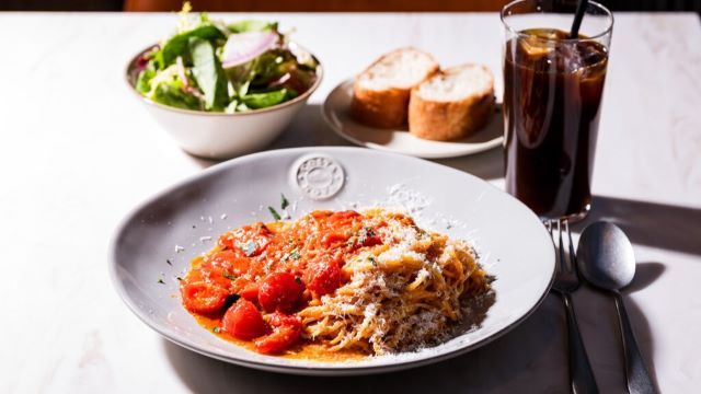 ●4-piece appetizer platter ●Choice of pasta ・Fruit tomato sauce made with Shizuoka Prefecture Amera tomatoes ・Chicken ragu and spring cabbage with anchovy cream ・Poor man's spaghetti with plenty of cheese *Selection per person ●Australian grape-fed beef tagliata