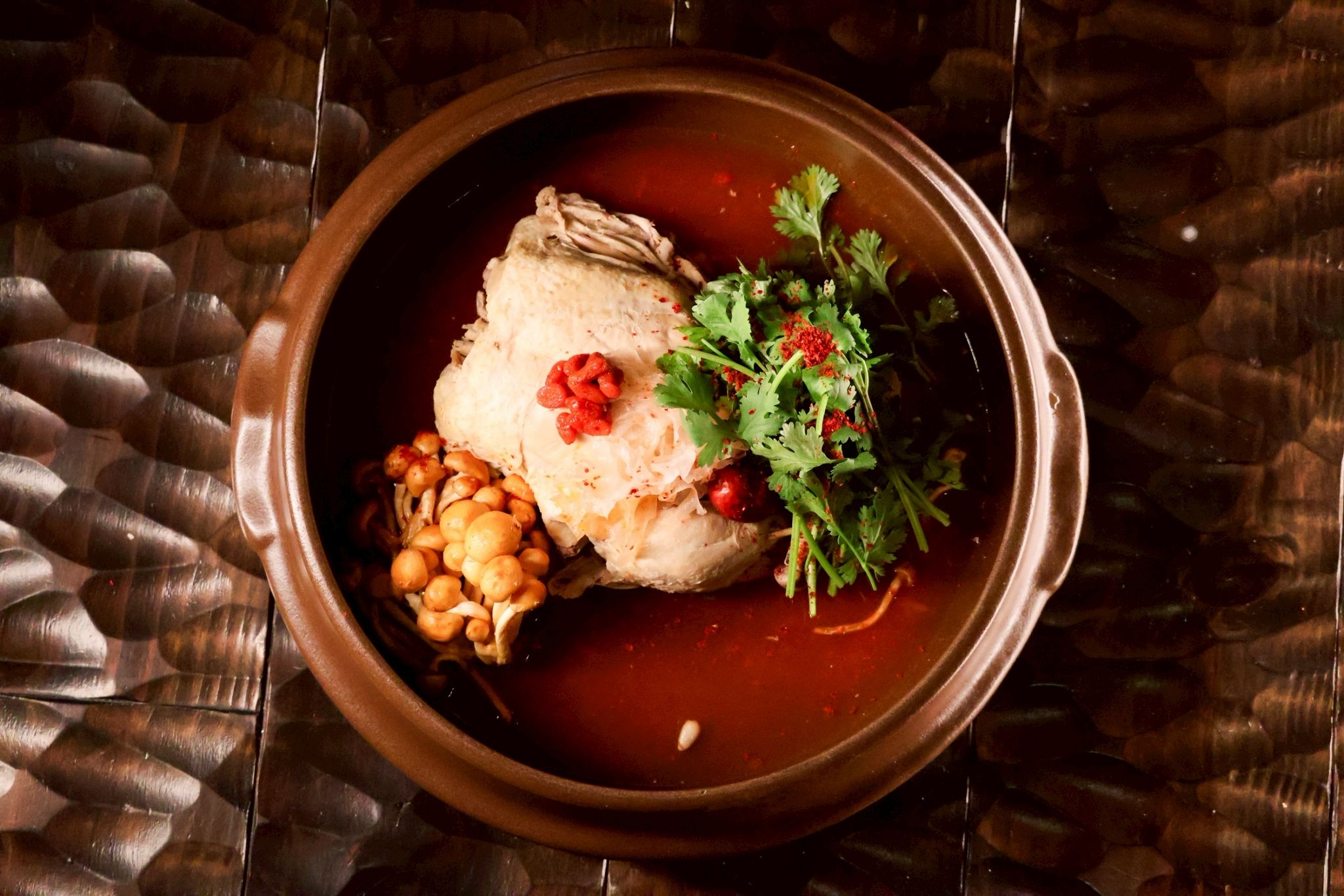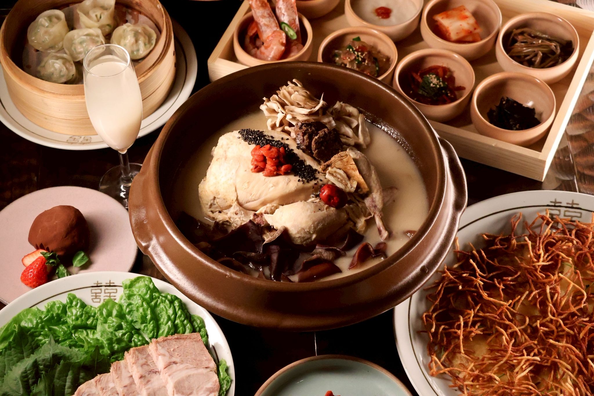 We offer "medicinal cuisine" that nourishes the body from within, featuring Samgyetang (Korean ginseng chicken soup) simmered for over 10 hours. Our six types of medicinal Samgyetang, combining ingredients such as minari, black sesame, and spices, can be chosen according to your purpose, whether it's for beauty, nourishment, or warming the body.