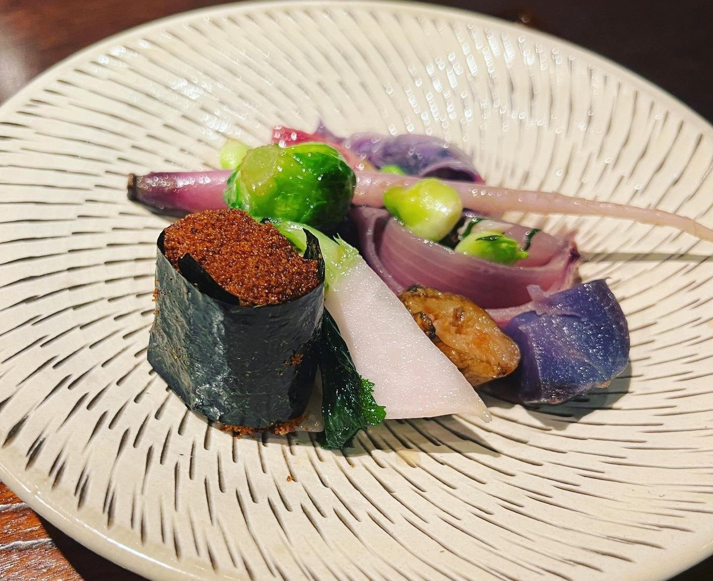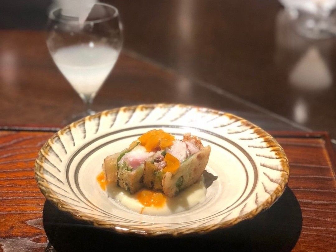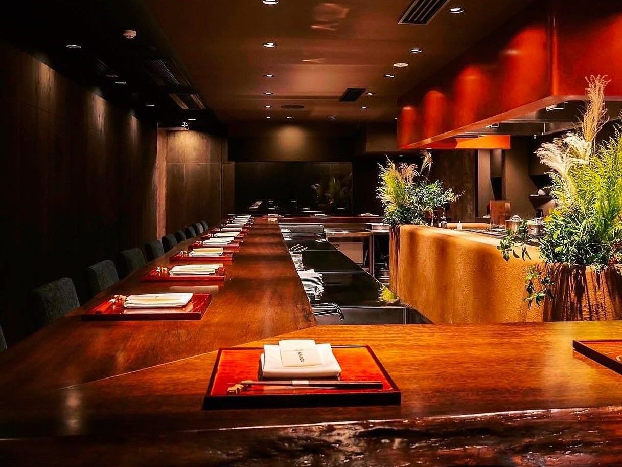 高級感の漂う店内では、国内でも有数な3人のシェフが串をテーマに、和食とフレンチの伝統と技法を取り入れた料理を提供しております。和食は前衛的に、フレンチはクラシカルを軸足にし、それぞれの特色を最大限に活かすことを心がけており、ライブ感のあるオープンキッチンで楽しんでいただけます。和食とフレンチ、さらにカクテルやサワーなどさまざまなお酒とのマリアージュが、素敵なひと時を鮮やかに彩ります。
