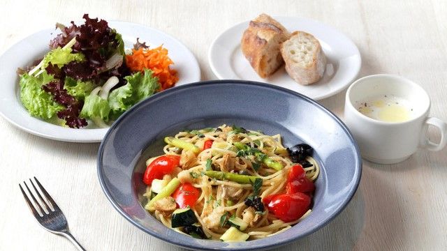 ・Toast Drink ・Salad ・Selectable Main Course ~Pizza~ ・Marinara ・Margherita ・Bambino ・Romana ・Bianchetti (+¥300) ・Quattro Formaggi (+¥600) ~Pasta~ ・Spaghetti with Whitebait and Perilla Leaf Peperoncino ・Linguine with Ricotta and Tomato Sauce ・Awaji Beef Bolognese Rigatoni (+¥300) ~Meat Dish~ Roasted Chicken Thigh (+¥200) ・Today's Desert ・Coffee or Tea