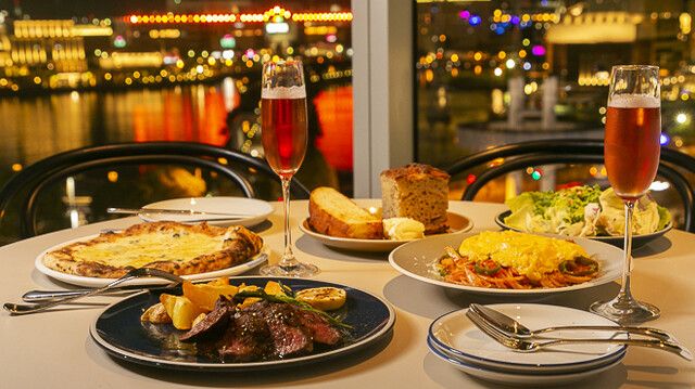 店内は白を基調としたシンプルで空間を贅沢に使用したデザインの落ち着いた空間となっています。オープンキッチンの周りはおしゃれなタイル張り、大窓からはみなとみらいの美しい景色もお楽しみいただけます。 パスタにピザ、パンケーキ、そしてパフェの四つのPを意識したメニューをご用意しています。厳選した上質な小麦粉を使用した世界の食文化をお楽しみいただけます。季節感を感じられる旬の食材とともにPOPなメニューをご堪能ください。
