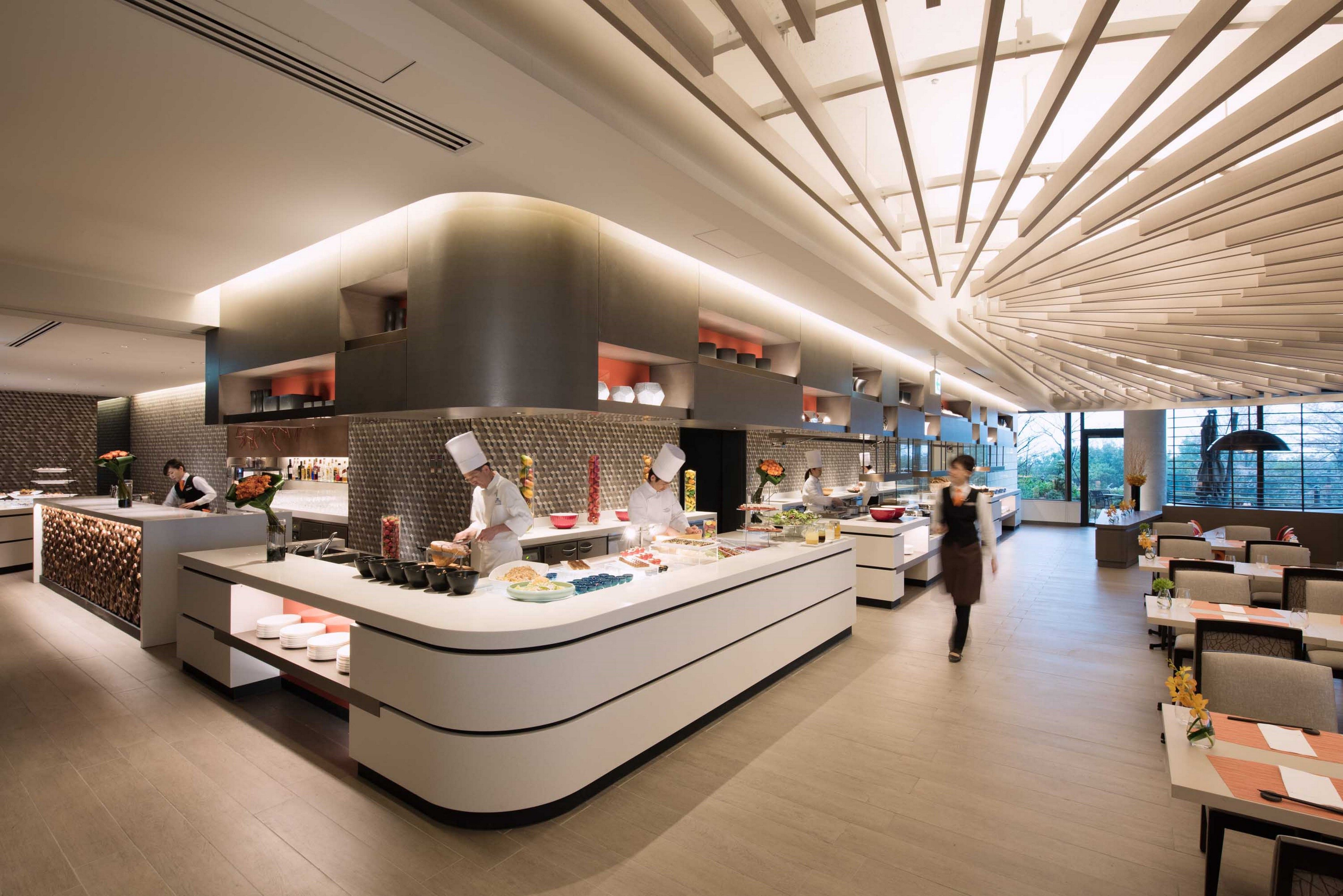 クロマツや寄木など地元の要素をデザインに取り入れ、コンテンポラリーでありながら日本的な素材感を大切にしたインテリアが特徴のオールデイダイニングレストラン。広々としたメインダイニングエリア、コースなどをお召し上がりいただくのに適したセミプライベートエリア、個室1室、テラス席を備え、朝食から夕食までさまざまなお料理をビュッフェスタイルでお楽しみいただけます。