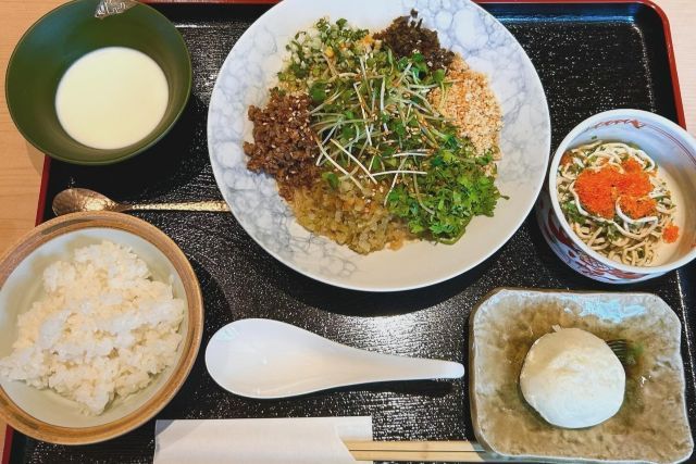 [Course contents] Seasonal soup Hong Kong style sashimi salad Seafood dish Meat dish Light tantan noodles *Change to shark fin ramen for an additional ¥2,000 Almond tofu