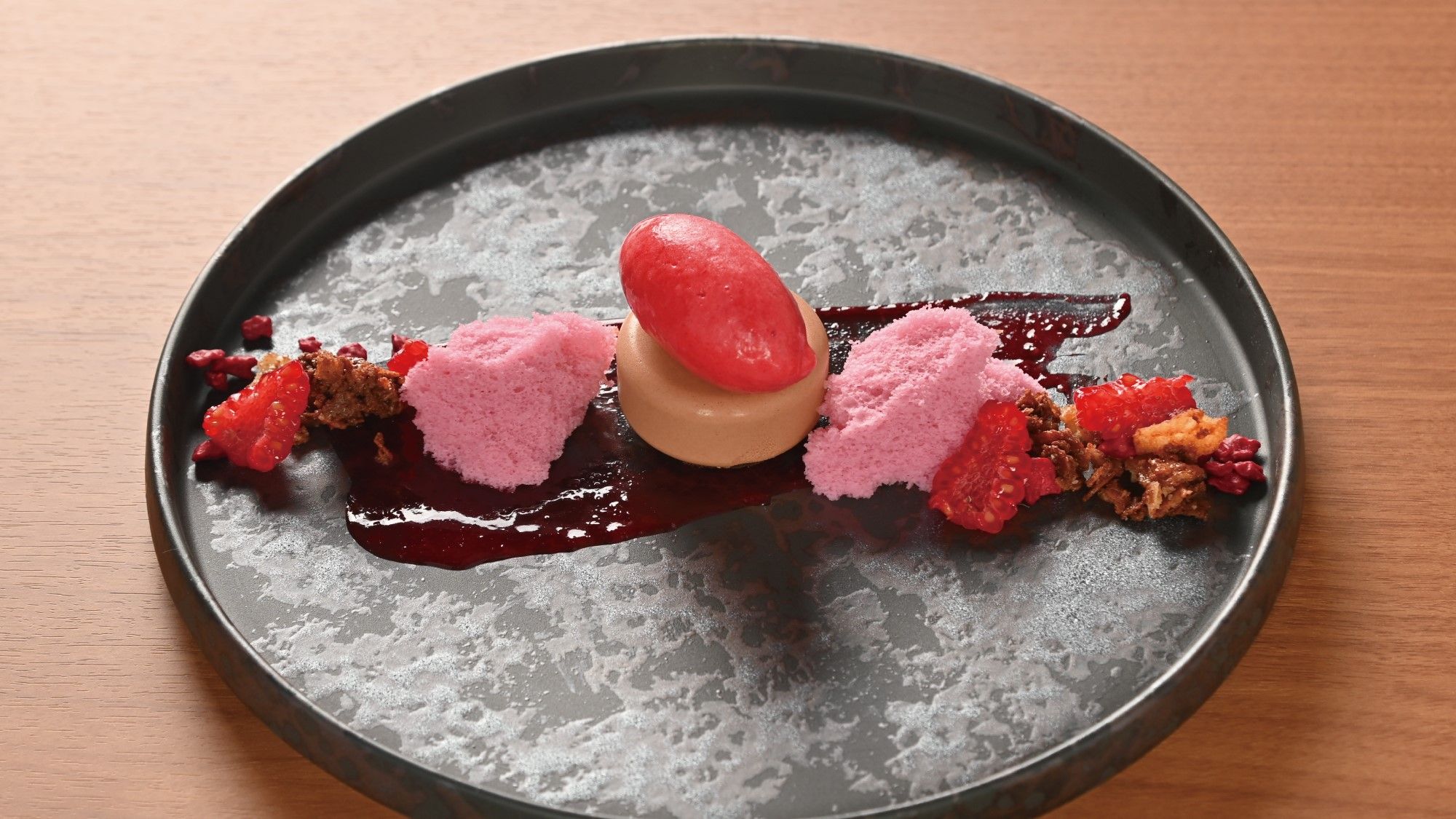 カウンターの目の前で調理する、フルコースやステーキなどのメニュー。「フレンチ」と「鉄板焼き」という、2つのコンセプトからお選びいただけます。そのコンセプトに合わせた2通りのカウンター席がございますが、どちらもシンプルな内装。その中に、フレンチは木、鉄板は石と、それぞれ材質の異なるカウンターを設置しているだけです。そのため、目の前のひと皿に、しっかり集中していただけます。種類豊富なワインはもちろん、日本酒も取り揃えておりますので、合わせてお楽しみください。