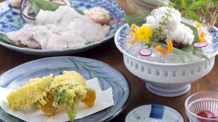 A hidden gem in Kyoto’s Karasuma-Oike, Kyoto Yanagimachi Honda-tei offers rare fish delivered direct from Japan’s ports and brewery-direct sake. Live tanks showcase wild kue and swimming conger; at the counter, enjoy seasonal courses—hamo in summer, kue or tiger puffer hot pot in winter—paired with aged and hard-to-find sake.