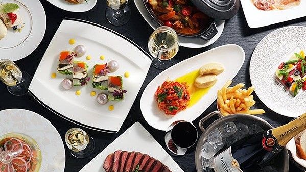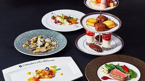 Enjoy New York & French fusion cuisine at Manhattan Dining & Champagne Terrace. With fresh air and views of the Rainbow Bridge, Sumida River, Tokyo Skytree® and Tokyo Tower, it is truly a sight to behold. Healthy fusion dishes are served by accomplished Chef Taisuke Inoue, Enjoy your meal by starting with "Colorful Art Terrine" for hors d'oeuvres.