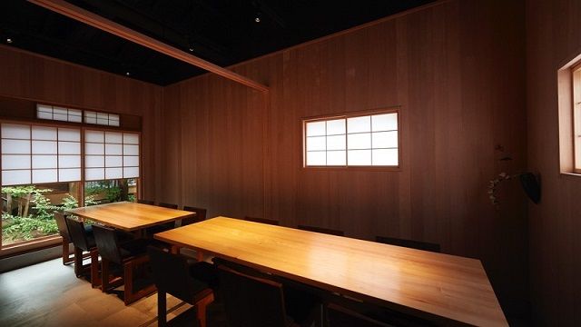 カウンターでは板場の臨場感を感じられるように、日本庭園を眺めることができる個室では大切な方との語らいを楽しんでいただけるように、いずれも豊かなひと時をお過ごしいただけるよう洗練された空間を演出しています。「地元漁師から買いつけた朝とれの鮮魚や、手間ひまかけて育てられた季節の野菜」などの富山の食材を惜しみなく使ったさまざまの品を、おまかせのコース料理にして昼も夜も提供しています。