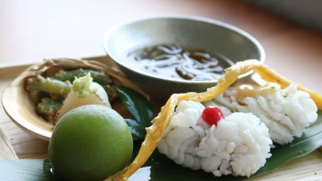 「『心地よい場所』にしたい。」そんなシンプルな想いを込めた店「こゝちよ」では、窓から自然豊かな眺望を望むことができます。店内には淡路島に由来する作家さんの手から生まれた調度品の数々も配しており、この島の雰囲気を存分に感じていただけます。こゝちよの魅力といえば、旬の魚料理です。季節によって姿を変え、春なら備長炭の煙を纏わせた穴子、夏には関西名物でもある上品な味わいの鱧、秋から冬にかけては市場ではお目にかかれない3年とらふぐをご用意。極上の味に舌鼓を打つ体験をお楽しみください。