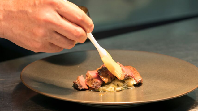 シェフ道野正が手がけるフレンチレストランでは、四季折々の旬の素材を使ったコースメニューが楽しめます。緻密な計算のもとに組み立てられた料理は、一つのストーリーを紡ぎだし、その時にしか味わえない一期一会のひとときを提供します。都会の喧騒を忘れ、洗練された空間でゆったりとした時間をお過ごしいただけます。パーテーションで仕切られた席もありますので、大切な人との特別な時間をお楽しみください。お料理にはワインやシャンパンも豊富に取り揃えております。