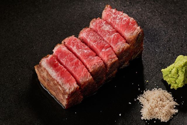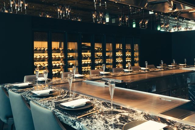 おちあいろうステーキハウスでは、黒毛和牛と季節の食材を目の前で調理する鉄板焼きをお楽しみいただけます。仏大統領のシェフ経験者監修のメニューに加え、パティシエ特製デザートもご用意。優雅な空間で、特別な時間をお過ごしください。