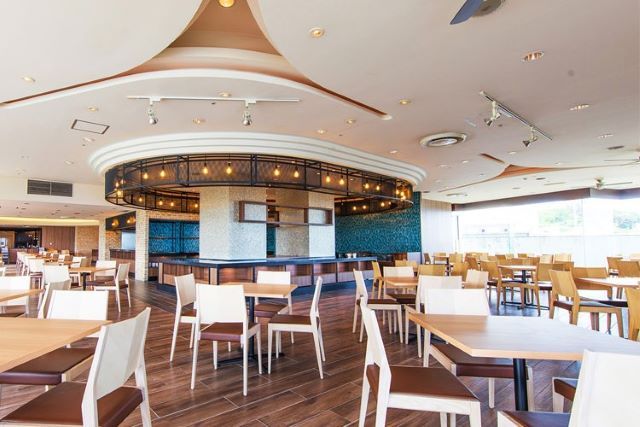 From the large window of the restaurant, you can see the east coast of Okinawa. You can enjoy the buffet-style food for lunch and dinner while enjoying the scenery. At lunchtime, their menu consists of Western food, Chinese food, and sweets. Enjoy freshly baked bread and Okinawan cuisine while watching the night view at dinnertime and the sunrise over the east coast at breakfast.