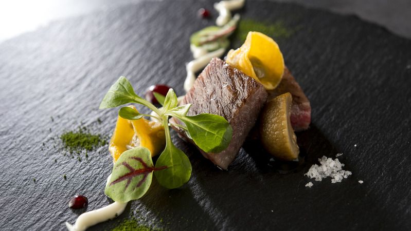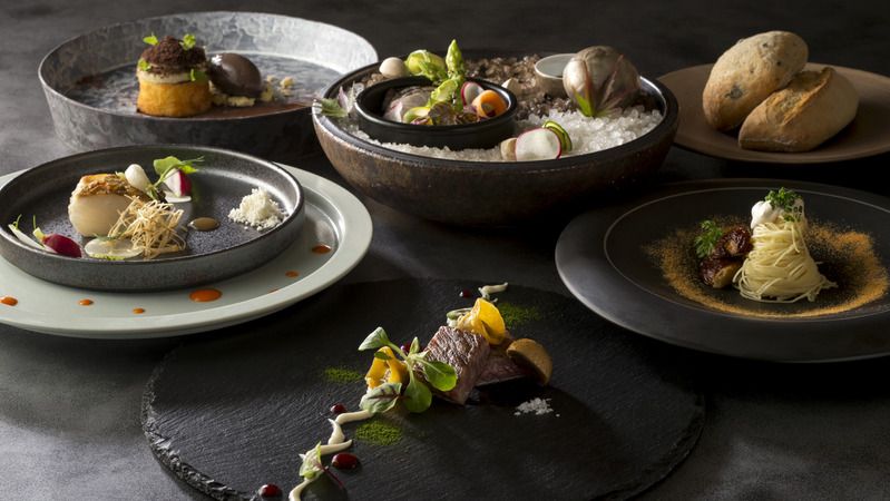 豊かな自然に囲まれたホテル、古湯温泉ONCRI/おんくり内にあり、モダンな雰囲気の中でゆったりと食事を楽しめます。契約農家から毎日届く旬野菜や玄海の魚介など、選りすぐりの食材がシェフの巧みな技で珠玉の一皿に。多彩な料理を堪能できるコース料理はもちろん、気軽に楽しめるピッツァやパスタなどのアラカルトメニューも充実しています。日常を忘れてリラックスできる空間は、記念日のお祝いにもおすすめ。