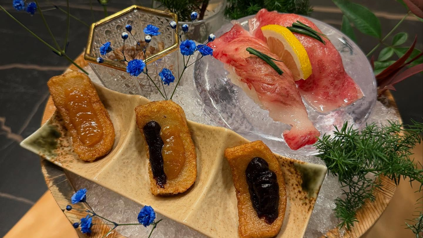 [8 types of appetizers using Omi beef and Kyoto specialty ingredients] -Grilled Yukhoe -Grilled meat sushi -Grilled meat sashimi -Simmered stewed beef tendon with ponzu sauce -Namafu Dengaku (Hanbeifu, Kyoto) -Kumiage Yuba (Hanbeifu, Kyoto) -Edamame [Omi beef sukiyaki] -Omi beef premium loin, 180g *The cuts and amounts of meat vary for the 8,800 yen course. ・Vegetable platter ・Namafu (Hanbeifu, Kyoto) ・Sukiyakifu (Hanbeifu, Kyoto) ・Grilled tofu ・Ito konnyaku ・Ran-oh, Oita Prefecture [Rice] ・Yadaime Gibei, Kyoto, carefully selected rice, premium ・Red soup stock ・Kyoto pickles [Dessert] Uji matcha pudding *If you don't like matcha, please write it in the request column.