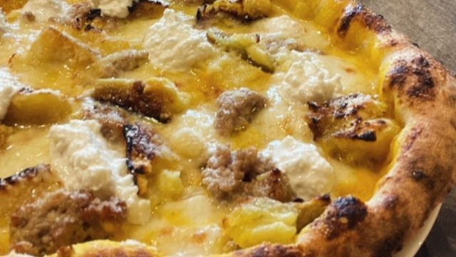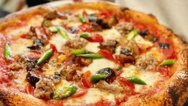Authentic Neapolitan pizza baked in a wood-fired oven