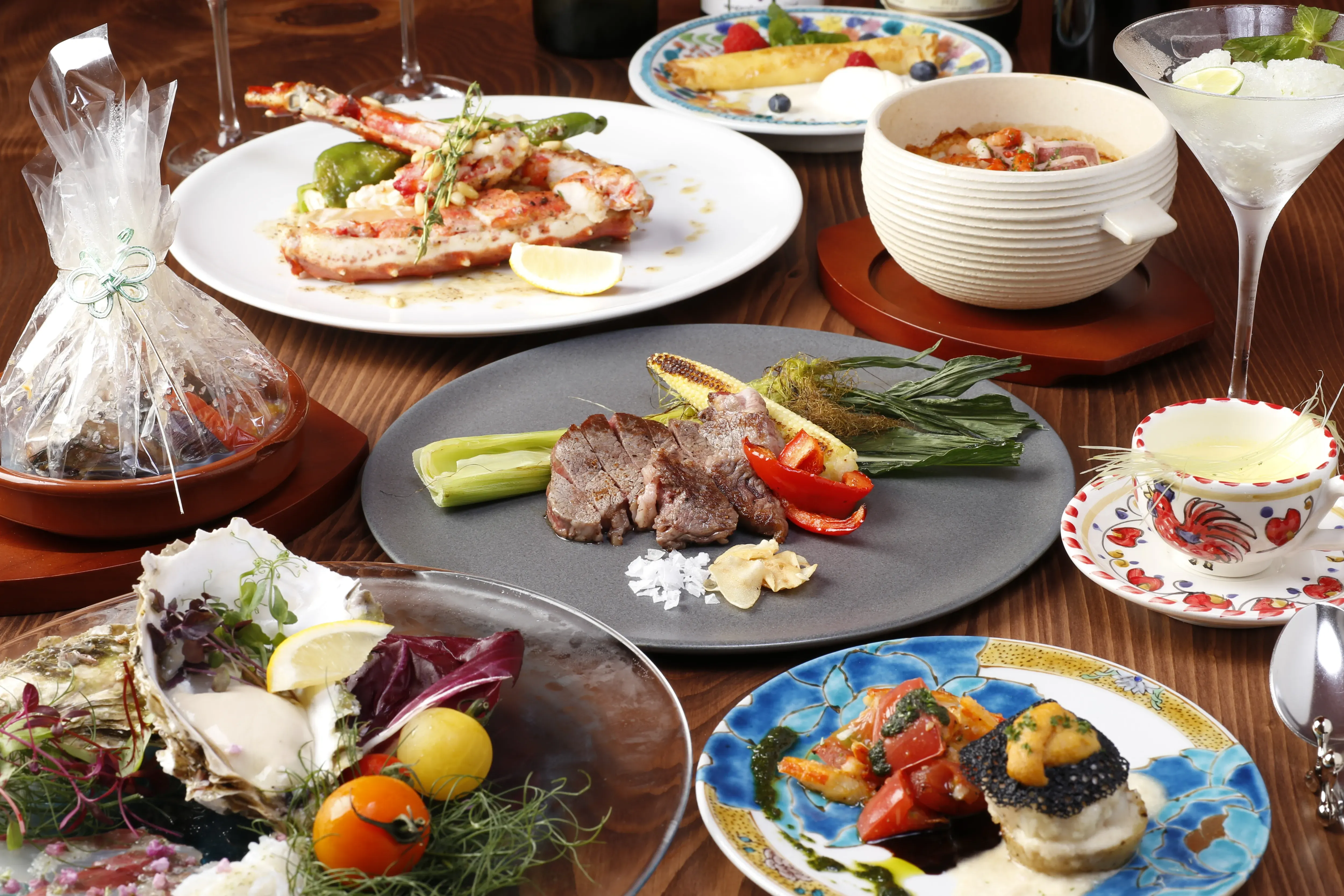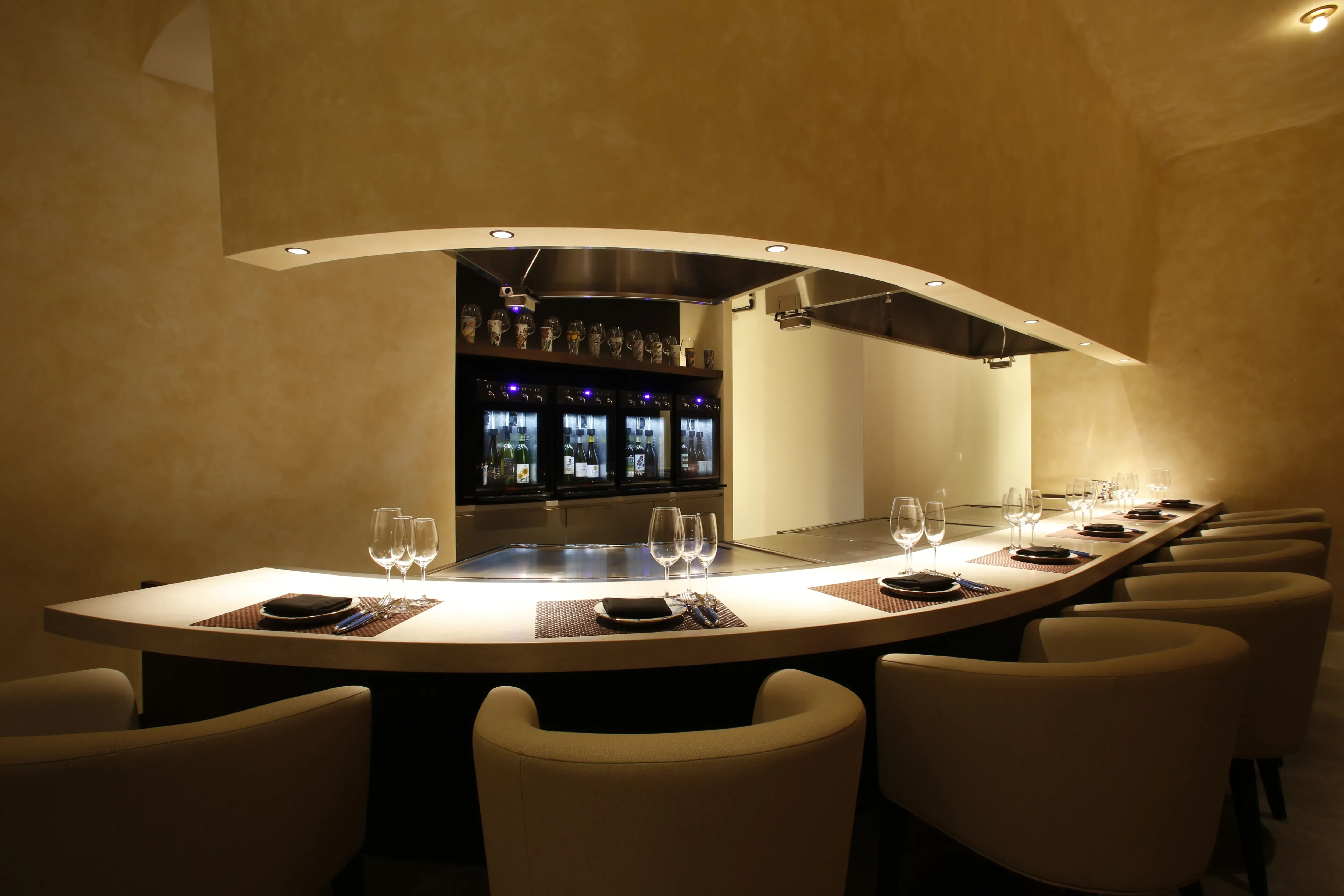 西洋料理×鉄板焼き×日本酒 から望む新しい水平線   選び抜かれた黒毛和牛や新鮮な魚介を、熟練シェフが目の前で焼き上げる圧巻のパフォーマンス。洗練された空間と極上のワインが、大切な方との特別なひとときを演出します。接待、誕生日、結婚記念日など、人生の重要な瞬間を彩る極上の鉄板焼きをぜひご堪能ください。