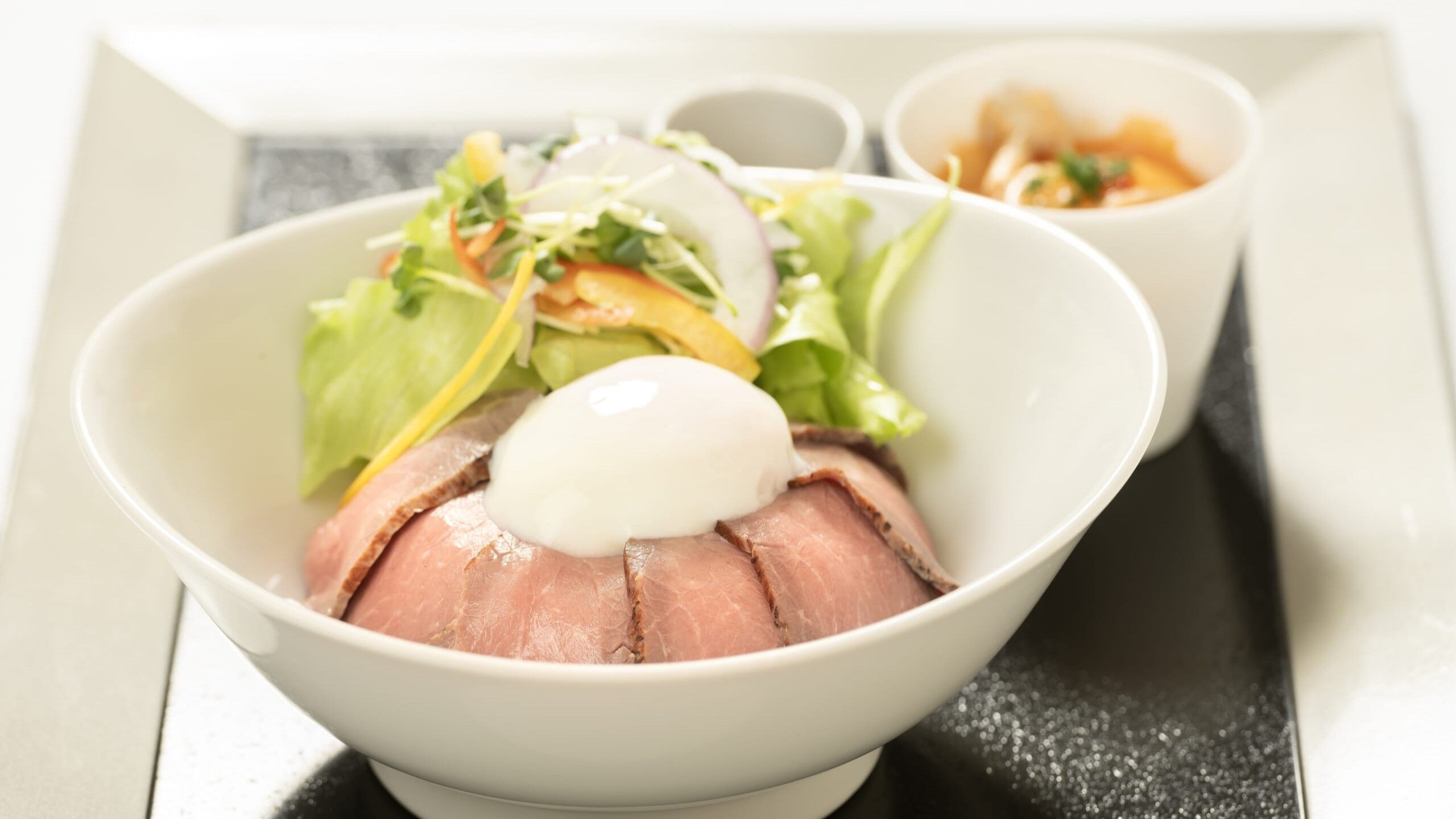 窓の外に広がる小塚山の眺望が美しいレストランで、心ゆくまで季節の欧風料理をお楽しみいただけます。白で統一されたインテリアが洗練された雰囲気を演出し、ゆったりとした空間で心温まるひとときをお過ごしください。おすすめのワンプレートランチや、アレイ特製コースメニューで、香り豊かな料理を堪能できます。
