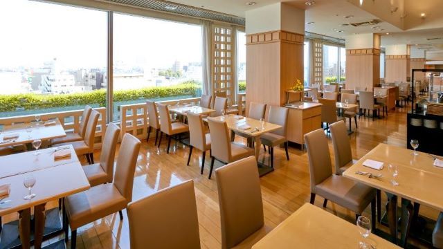店内は明るく開放的な空間です。ホテルの9階から外の景色を眺めながら、おいしい料理を満足いくまで楽しめます。和・洋・中といったバラエティー豊かなメニューをご用意。埼玉県産の食材を中心に、こだわりの食材で作った料理を提供いたします。ローストビーフやチョコファウンテンなどシェフ自慢の料理も味わうことが可能です。