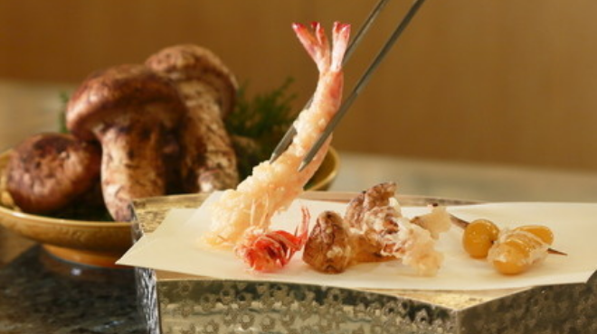 On the 2nd floor of Hotel Nikko Princess Kyoto is a tempura specialty restaurant. The wooden interior and cypress counter provides a cozy and warm atmosphere. With only 11 counter seats available, guests can indulge in the luxury of watching the chef prepare the tempura with fresh seafood and seasonal vegetables. Enjoy them piping hot with sake, shochu, wine, and other drinks of your choice.