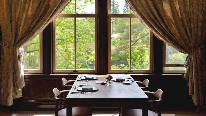 文化財である旧師団長官舎をリノベーションしたレストラン エリスは、歴史的な雰囲気とともにフランス料理を主とした和魂洋才のお料理を楽しめる場所です。エリスから50㌔圏内に食材を絞り、シェフ自ら足で探した食材を用いたおまかせコースは、一皿一皿がアートのように美しく、味わい深いです。全室個室となるため、大切な記念日や特別な日に最適です。また、美しい庭園を眺めながらの食事は、まるで時を超えた旅をしているかのような感覚を味わえます。