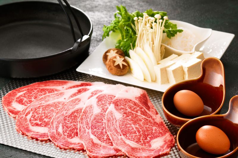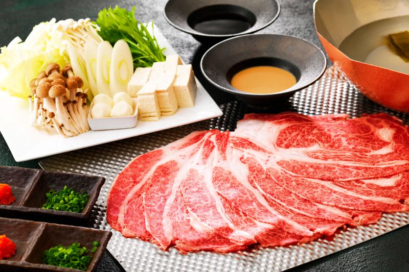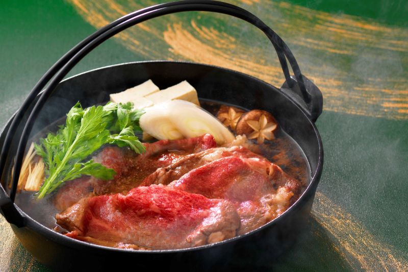 Special Seafood and Root Vegetable Marinade Prime "KAMIFURANO" Beef Loin SUKIYAKI Assorted Vegetables Rice, Miso soup, Pickles Dessert SHIKI style Coffee