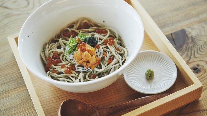 with nori seaweed, narazuke pickles and black shichimi pepper