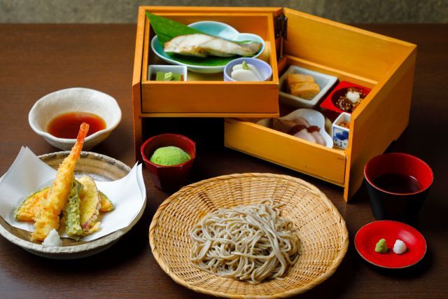[Course Contents] - Two-tiered bento box (seasonal appetizer) - Duck and parsley hotpot (Sankan parsley, domestic duck slices, domestic minced duck, shredded scallions, and Kyoto-style tofu from Hattori Tofu) - Soba noodles (Served with the hotpot broth.) - Dessert