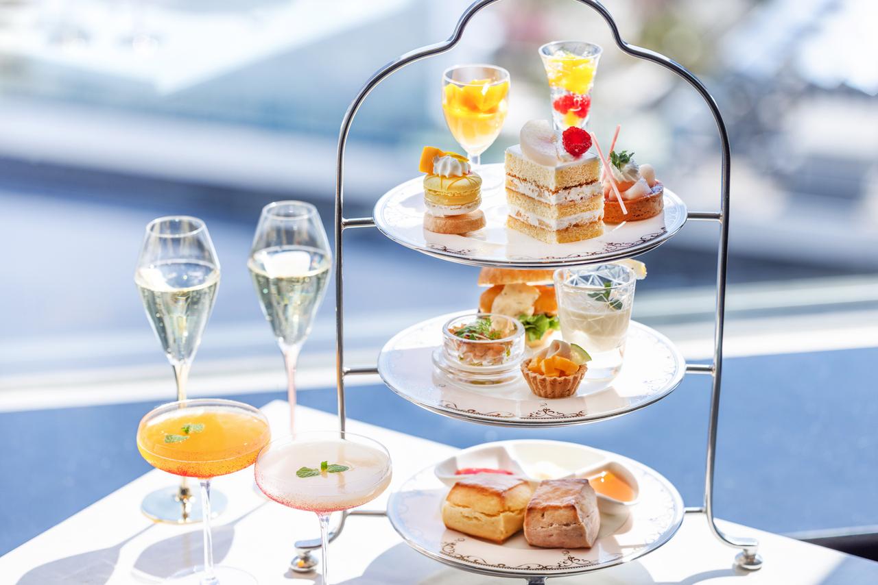 スカイラウンジ「ベイ・ビュー」スプリングイブニングハイティー~桜色と泡で彩る、春のひととき~│シャンパンフリーフロー