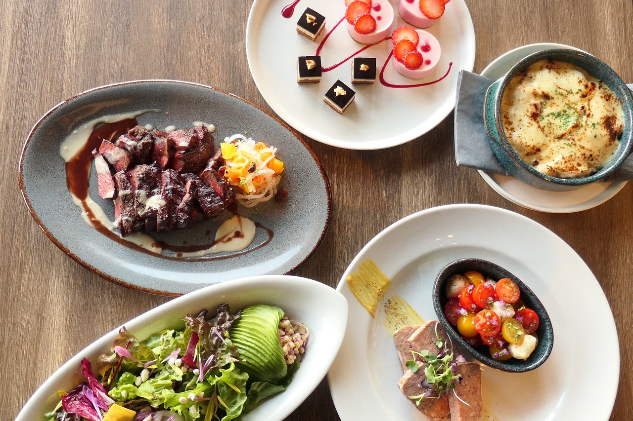 | DRINK | FREE DRINK 120 minutes (last order 30 minutes) Red and white wine, draft beer, highball, shochu standard cocktail, soft drinks, etc. *Can be changed to include sparkling wine or Japanese sake for an additional 1,000 yen (per person). *Can be extended by 30 minutes for an additional 1,000 yen (per person). | FOOD | - APPETIZER Sicilian-style fresh fish carpaccio, rillette tart, assorted prosciutto - SALAD Caesar salad - MAIN Angus beef bavette steak with Japanese-style balsamic sauce - PASTA Bacon and eggplant amatriciana - DESSERT Seasonal sorbet *Meals are shared. *The photo is for illustrative purposes only. *The menu may be subject to change.