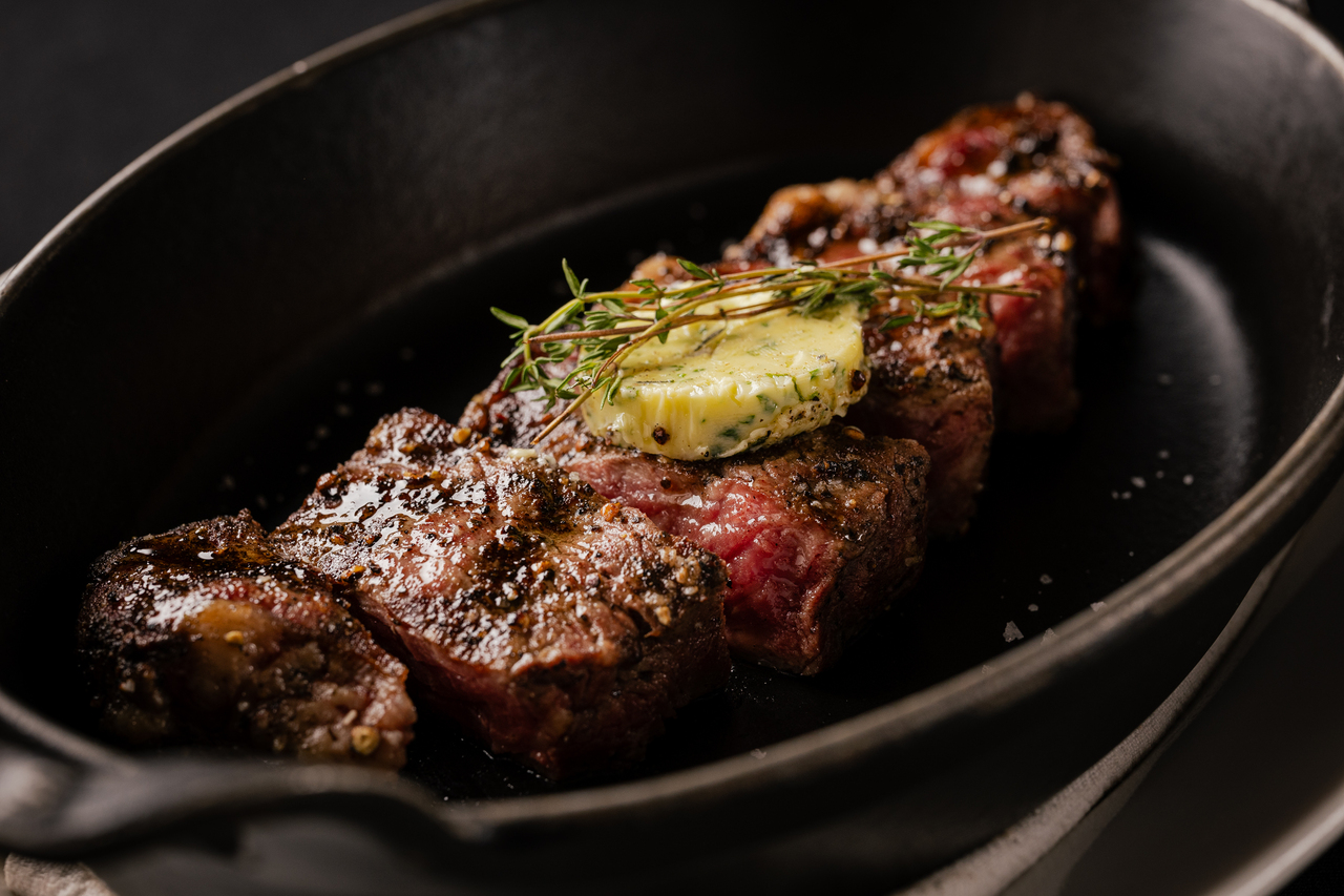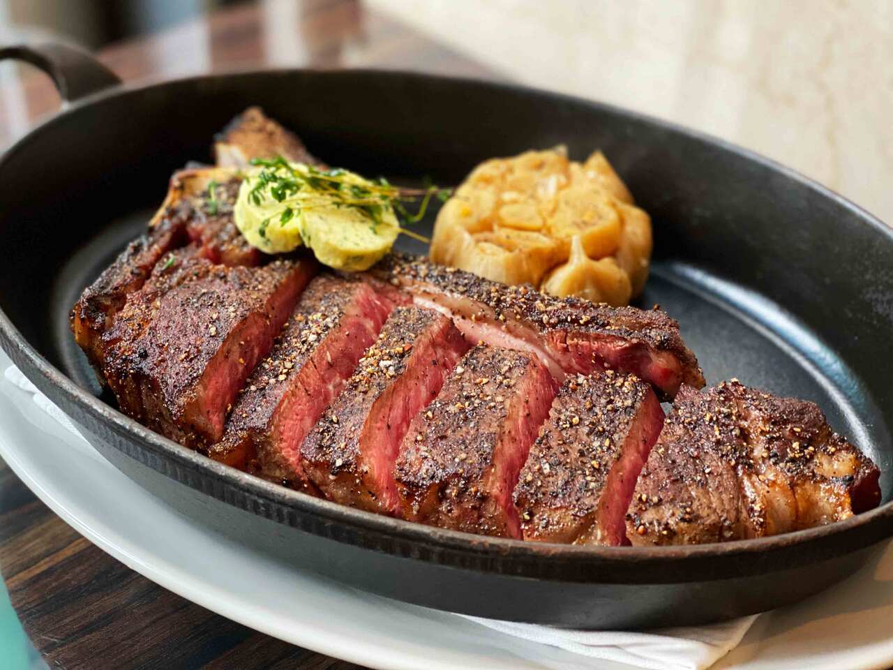 キャビアを添えた前菜やロブスターグリル、メインはドライエイジングTボーンステーキ700gと