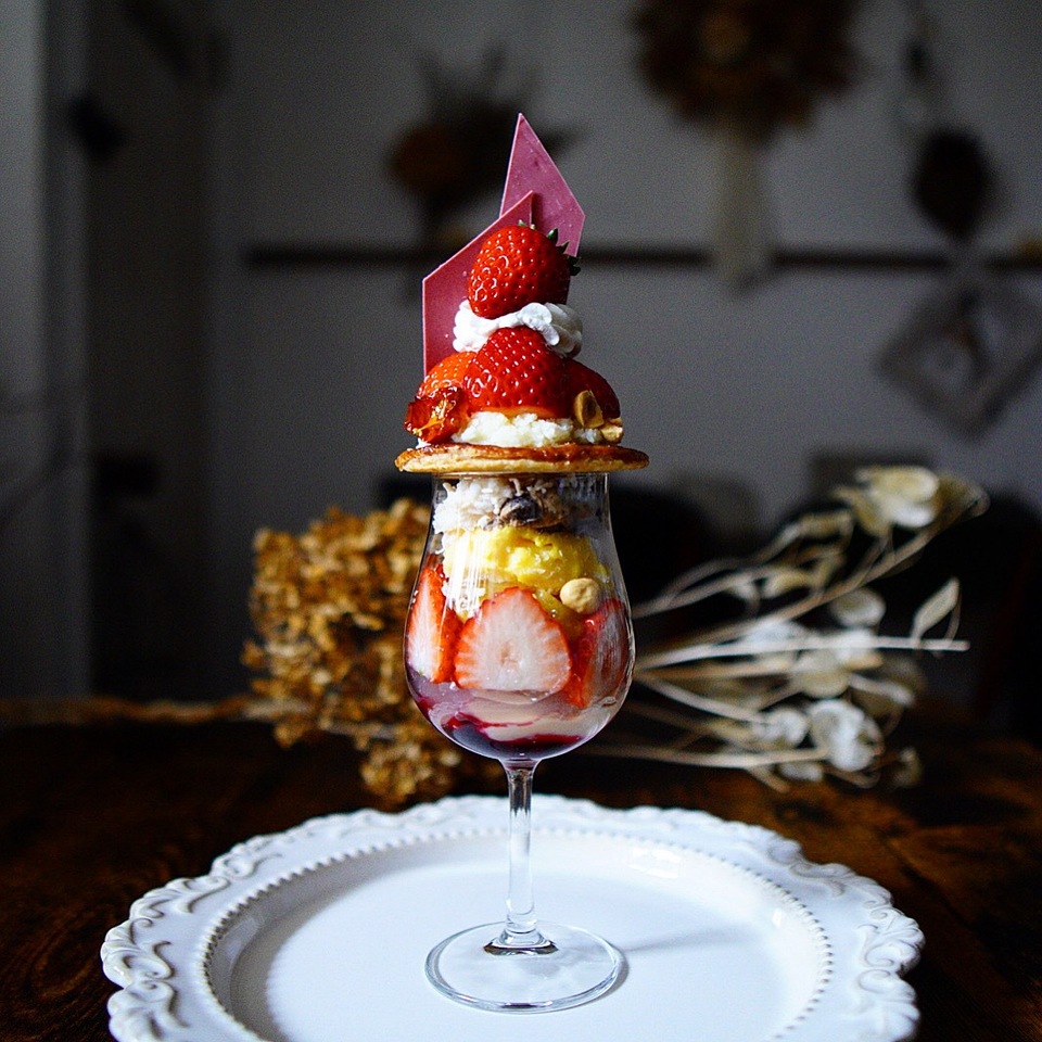 ひとつの美味しさとして、まとまりのあるパフェが完成しました🍓