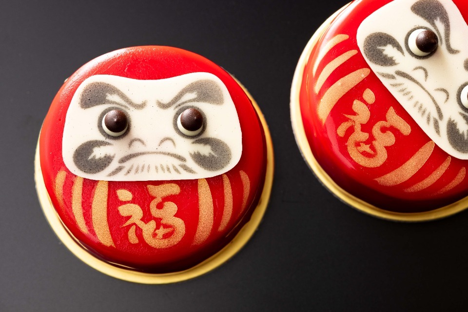 開運吉兆を象徴する達磨(だるま)をモチーフにした新作スイーツ。シェフパティシエ自慢のレアチーズケーキに朱色のグラッサージュを纏わせました。ひとつひとつ表情が微妙に異なりますのでお好みの一つをお選びください。
