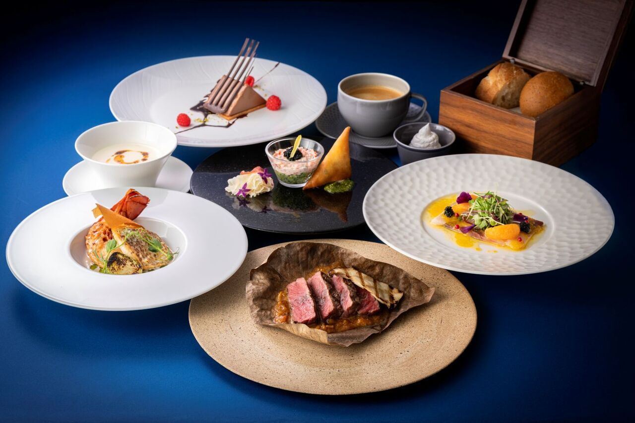 Executive Chef Hakamada presents a Christmas dinner course featuring a luxurious selection of premium ingredients, including white shrimp, lobster, scallops, and domestic beef tenderloin. Dishes include gravlax adorned in Christmas colors and panipuri inspired by Indian cuisine, offering delightful contrasts in texture. Beyond the beautiful presentation and delicate flavors, a pairing plan with wines selected by our sommelier is also available.