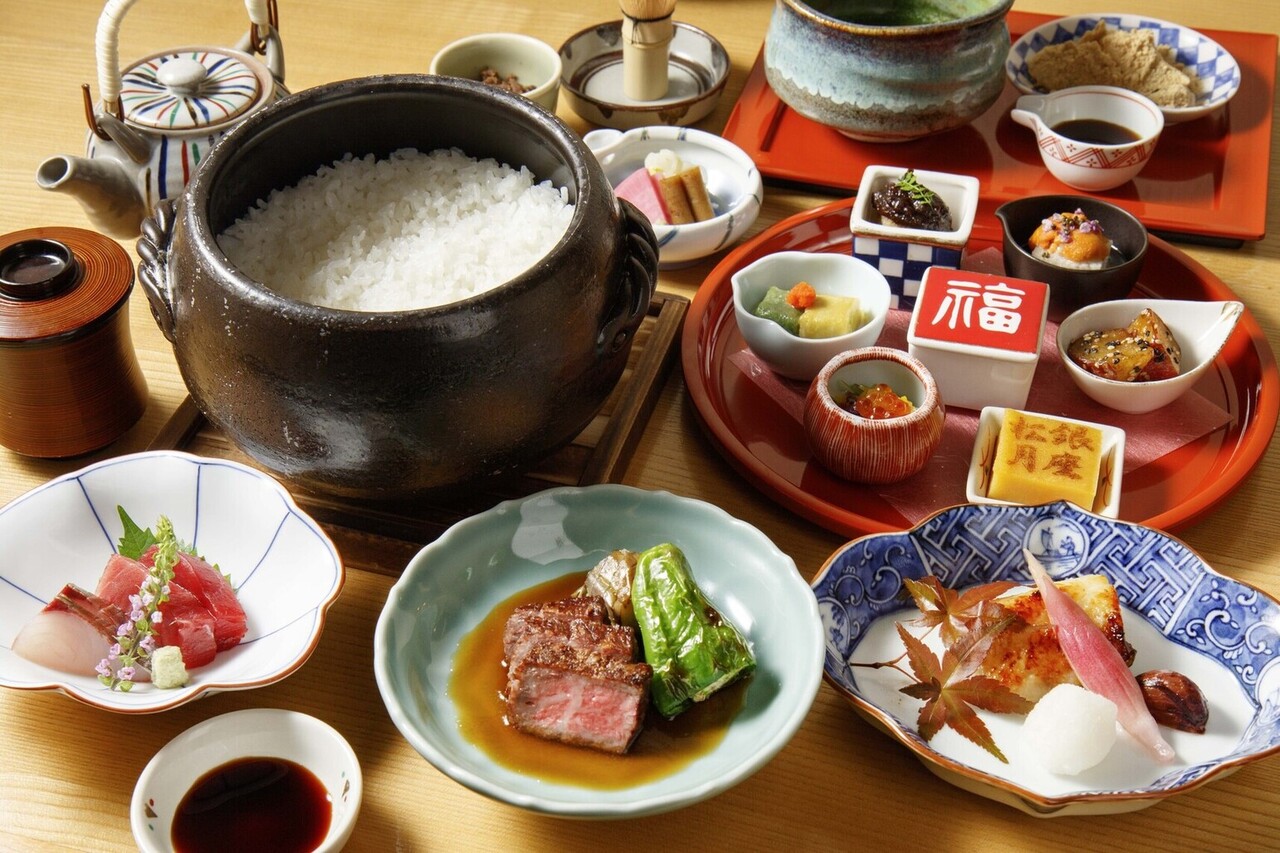 Our restaurant offers a luxurious plan featuring our original snow-aged wagyu beef, Ise lobster sashimi, and seasonal dishes. For the final dish, you can choose from our signature clay pot rice with premium rice and sea bream, or our special domestic eel hitsumabushi, in addition to the main dishes.