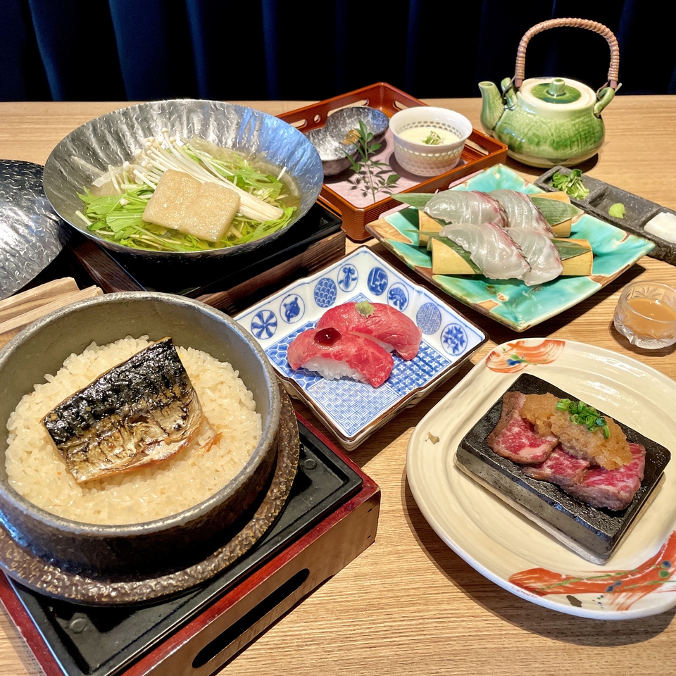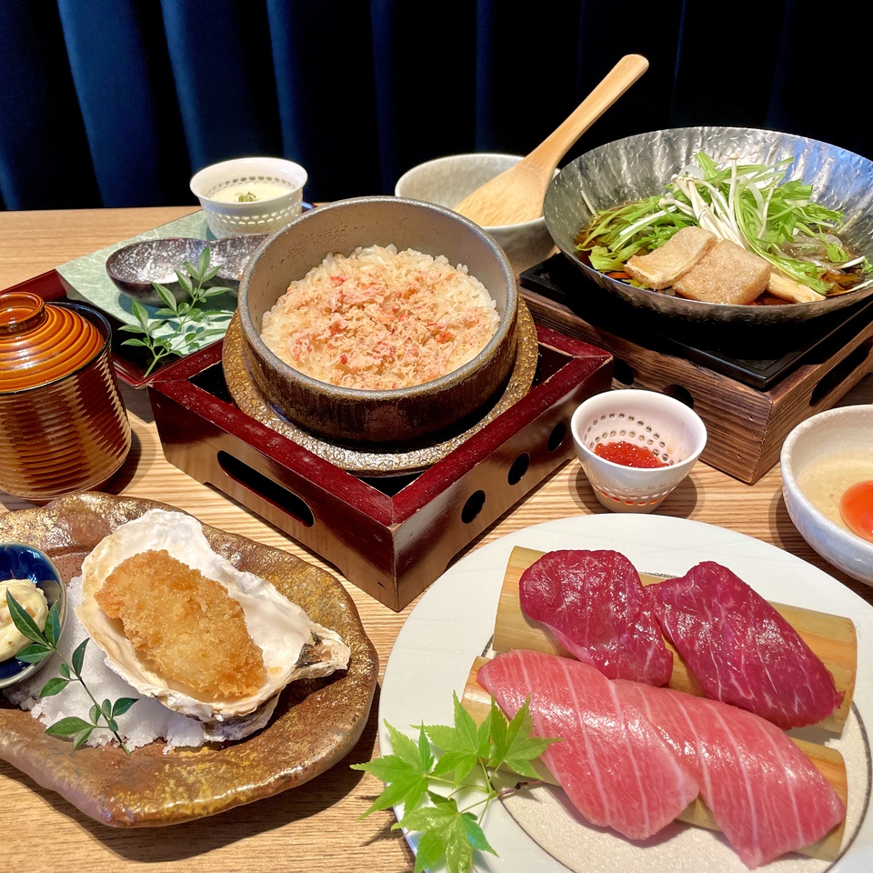 [Luxury seasonal lunch] "Small pot of golden dashi broth with freshly-sourced fried oysters" & "Japanese beef "Kurashita" stone-grilled steak and sea bream rice with hitsumabushi" Weekends and holidays: 2,990 yen